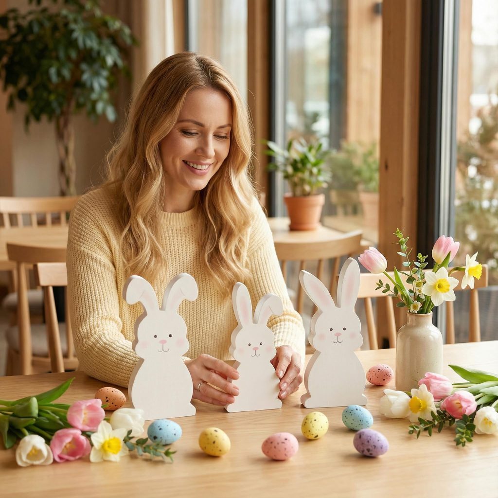 Easter is all about togetherness, and these bunny table signs help create a warm, festive atmosphere for your holiday gatherings. Use them as a lovely centerpiece for your Easter dining table, scatter them across your sideboards for a cohesive spring table decor look, or display them near your party setup to enhance your Easter party decorations. They add a soft, charming focal point that makes your space feel ready for family, friends, and all the joy of the Easter season.