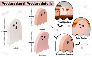 Chic & Playful Size for Any Setup-Dimensions (each ghost):5.5″ x 4.1″ x 0.8″ (largest),4.3″ x 4.5″ x 0.8″ (medium),3.5″ x 3.3″ x 0.8″ (smallest),Fits perfectly on desks, shelves, or as cute Halloween decor for bedroom displays