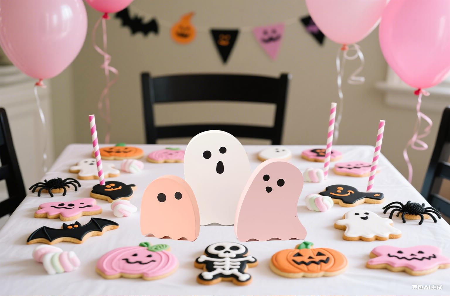 Charming Pink Ghost Decorations for Indoor Spaces-These cute ghost decorations feature soft pink and white hand-painted designs, ideal for pink Halloween decorations indoor.