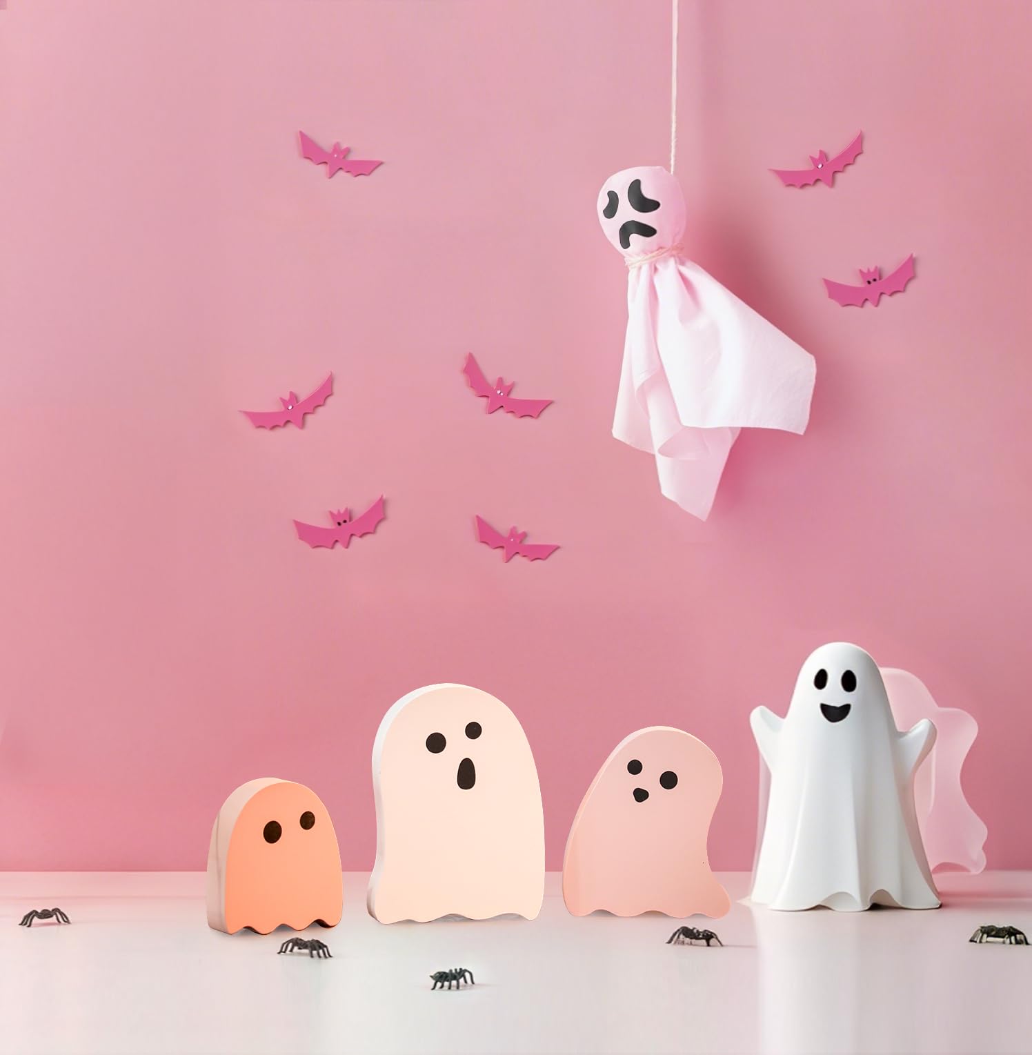 Premium Wooden Material for Longevity- Sturdy yet lightweight, these pink ghost decor pieces are durable for yearly reuse.